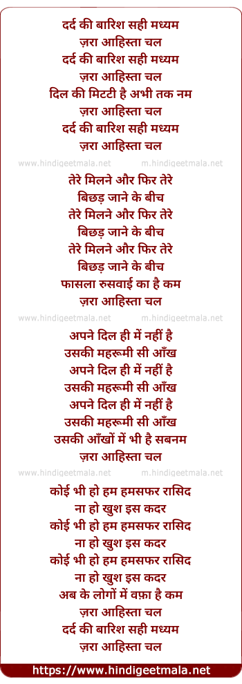 Lyrics of Zara Aahistaa Chal - दर्द की बारिश सही मध्यम