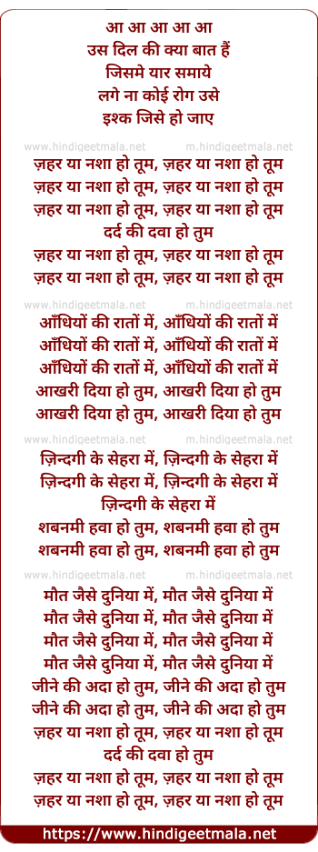 zehar ya nasha ho tum, zehar ya nasha ho tum
