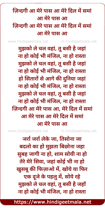 zindagi aa mere paas aa,mere dil me saman