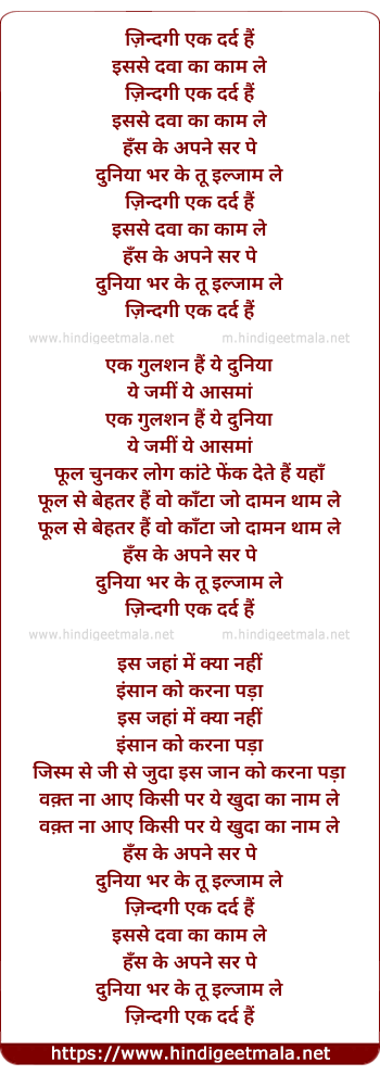 Lyrics of Zindagi Ek Dard Hai - ज़िन्दगी एक दर्द हैं