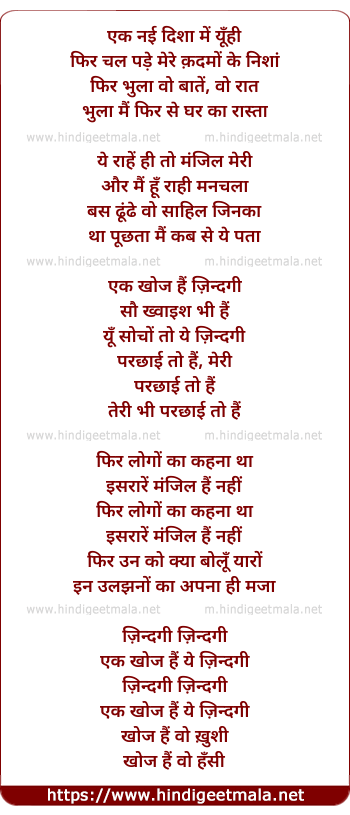Lyrics of Zindagi Ik Khoj - एक नई दिशा में यूँही