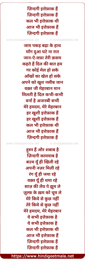 Lyrics of Zindagi Ittefaq Hai ( Female) - ज़िन्दगी इत्तेफ़ाक हैं
