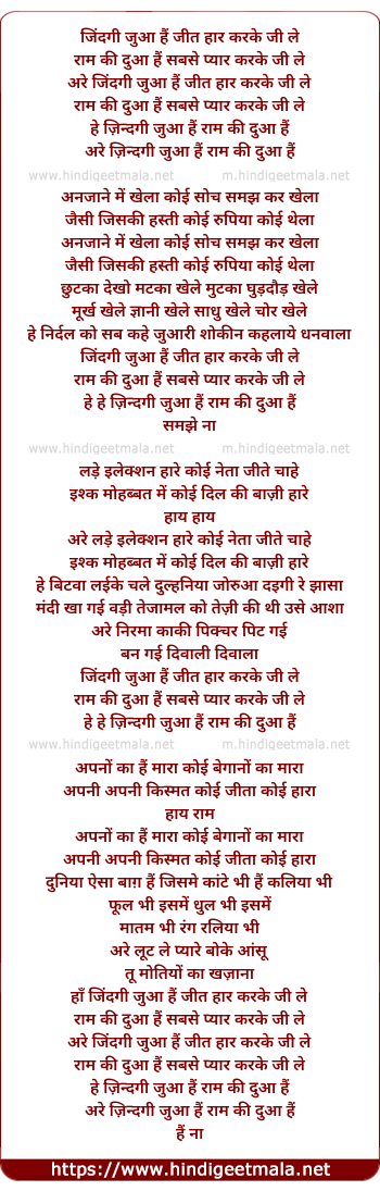 hey hey zindagi juaa hai ram ki dua hai