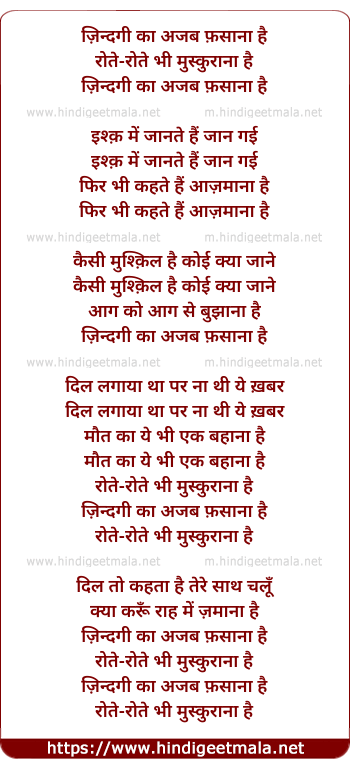 Lyrics of Zindagi Kaa Ajab Fasaanaa Hai - ज़िन्दगी का अजब फ़साना है