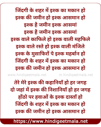 Lyrics of Zindagi Ke Shehar Me - जिंदगी के शहर में इश्क का मकान हो