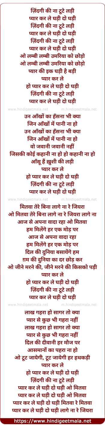 Lyrics of Zindagi Ki Naa Tute Ladi - II - ज़िंदगी की ना टूटे लड़ी