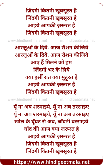 Lyrics of Zindagi Kitni Khubsurat Hai - ज़िंदगी कितनी खूबसूरत है