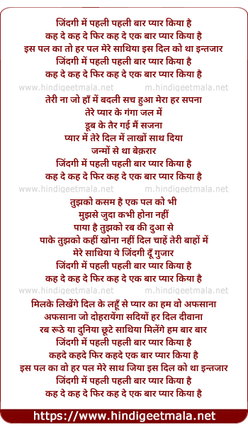 Lyrics of Zindagi Me Pehli Pehli Baar Yar Kiya Hai - जिंदगी में पहली पहली बार प्यार किया है