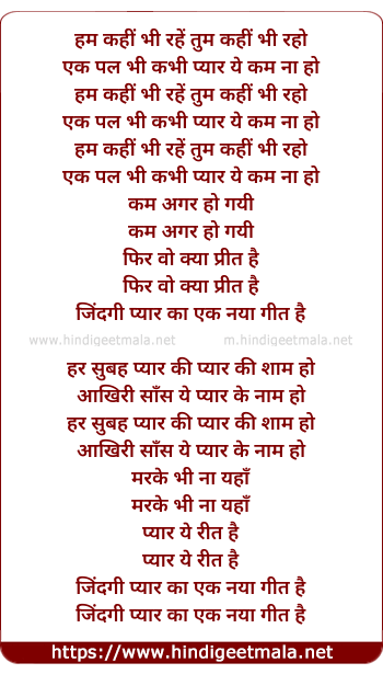 Lyrics of Zindagi Pyar Ka Ek Naya Geet Hai - जिंदगी प्यार का एक नया गीत है