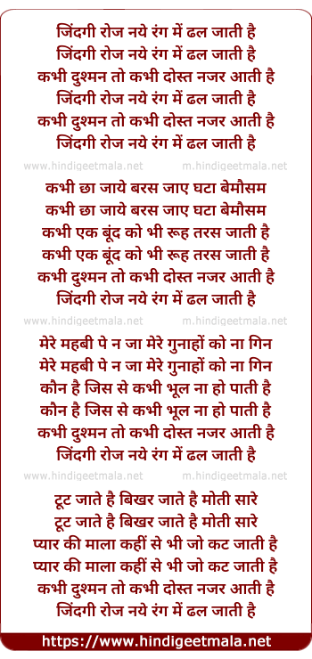 Lyrics of Zindagi Roz - जिंदगी रोज नये रंग में ढल जाती है
