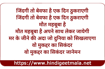 Lyrics of Zindagi To Bewafa Hai Ek Din Thukrayegi - जिंदगी तो बेवफा है एक दिन ठुकरायेगी