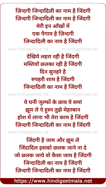 Lyrics of Zindagi Zindadili Ka Nam Hai Zindagi - ज़िन्दगी जिन्दादिली का नाम है जिंदगी