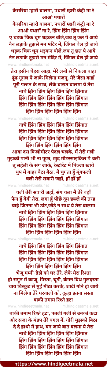 aao padharo na re, zing zing zing zing
